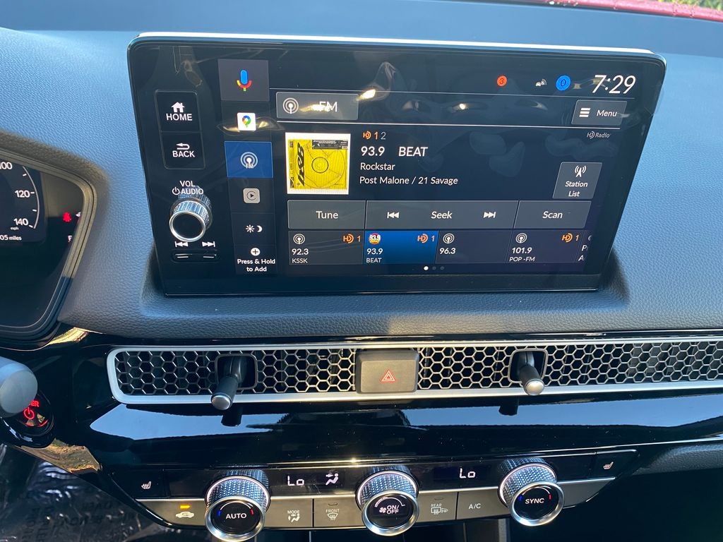 - Radio: Bose Premium Sound System -inc: 12 speakers w/subwoofer, 9" color touchscreen, Google built-in (includes 3-years unlimited data plan for in-vehicle apps), Alexa built-in, Bluetooth® HandsFreeLink and streaming audio, HondaLink, HondaLink subscription services, Speed-Sensitive Volume Compensation (SVC), Radio Data System (RDS), wireless Apple CarPlay and wireless Android Auto compatibility, Wi-Fi hotspot capability, USB-C 3.0A smartphone/audio interface/charging port and HD Radio