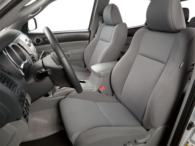 The Tacoma's spacious and well-equipped cabin features power windows, power door locks, air conditioning, and a leather-wrapped steering wheel with integrated audio controls. Seating is comfortable and supportive, with split-folding rear seats that provide versatile cargo-carrying options.